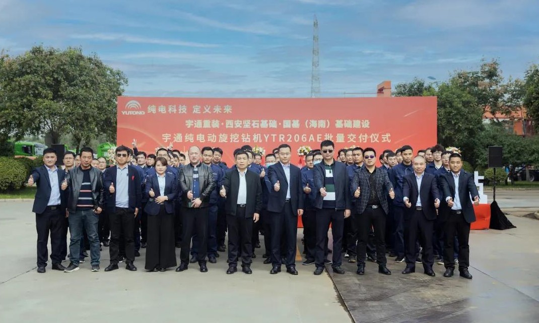 2021年10月12日,宇通純電動(dòng)旋挖鉆YTR206AE交付西安堅(jiān)石基礎(chǔ)工程、國基(海南)基礎(chǔ)建設(shè)批量發(fā)車儀式圓滿舉行。